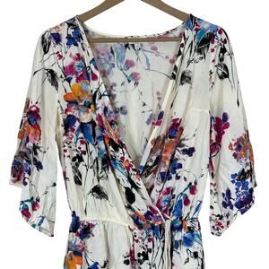 Umgee Romper Womens S Floral Cotton 3/4 Kimono Sleeve Boho Festival Lightweight