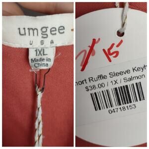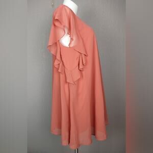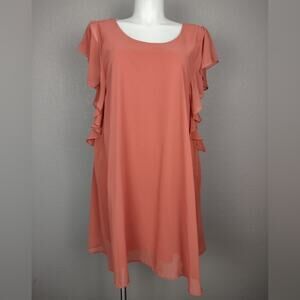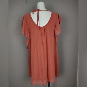 Umgee Ruffle Flutter Sleeve Keyhole Short Salmon Dress Size 1X Flawed