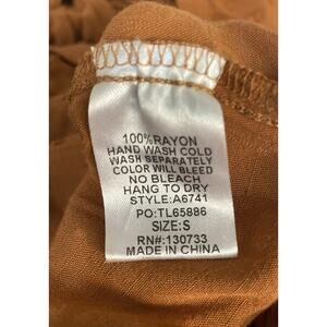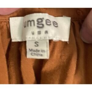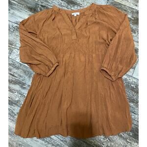 Umgee Rusty Brown Swiss Dot dress Cinched Waist V-Neck Size Small