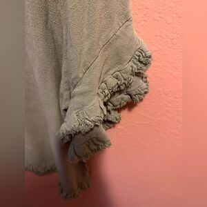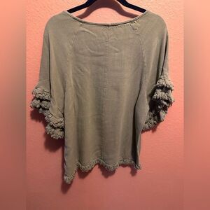 Umgee Sage green fringe trim linen blend Top