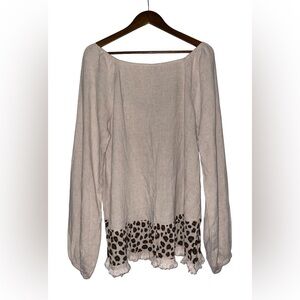 Umgee Scoop Neck Classic Fit Blouse Women XL Boho Fringe Hem Linen Blend