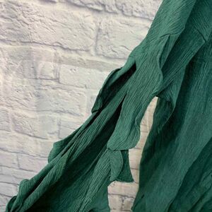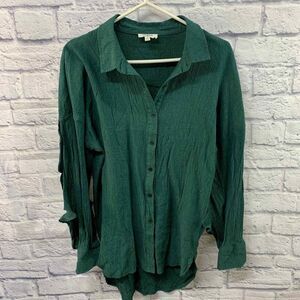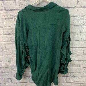 Umgee Shirt Womens Small Green Oversized Tunic Button Down Ruffle Open Sleeve