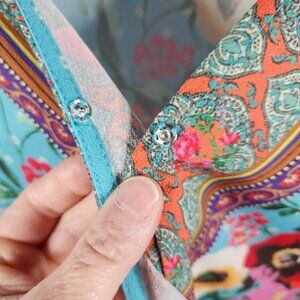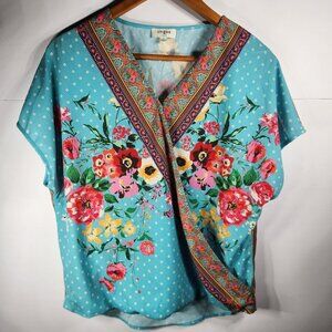 Umgee Short Sleeve Blue Floral Print Blouse Sz Small