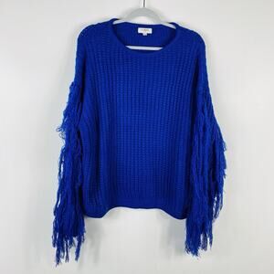 Umgee Size Medium Fringe Sleeve Open Knit Sweater Blue