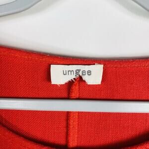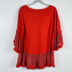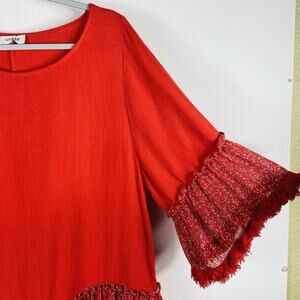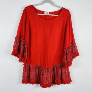 Umgee Size Medium Linen Blend Frayed Edge Ruffle Detail Top Orange
