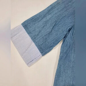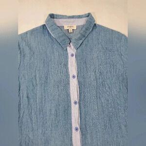 Umgee Size Small Chambray Button Front Mini Dress Popover Top Short Sleeve