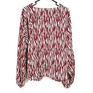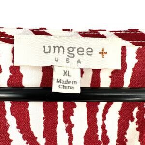 Umgee Size XL Faux Wrap V Neck Blouse Red Zebra Striped Crossover Front Zebra