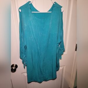 Umgee Slit sleeve blouse , high low. Size XL 60% cotton 40% polyester ptp 25" L 28"