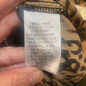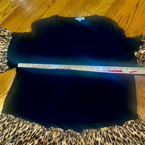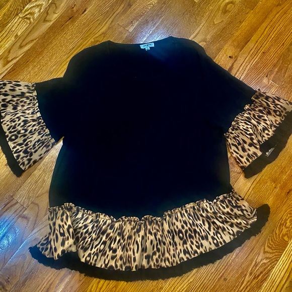 Umgee. Small (I think a medium on the smaller side could also wear it). I absolutely adore this top. Dress it up or wear it casual. I hate to give it up. It’s just too big now.