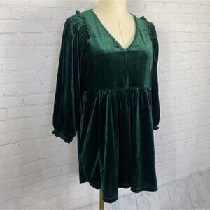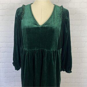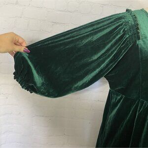 Umgee Small Green Velvet Peasant Balloon Sleeve Holiday Dress