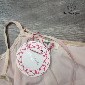 A shimmering pink confection of polyester and metallic threads dances with the promise of summer evenings. This darling Umgee mini dress, pristine with its original tags, features delicate spaghetti straps that whisper across bare shoulders like jazz notes floating through a garden party.