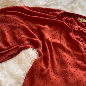 Umgee Swiss Dot Long Sleeve Flowy Sleeves Boxy Cut Size Small Burnt Orange