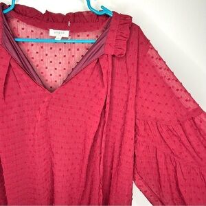 Title: Umgee Swiss Dot Red Burgundy Boho Long Sleeve Tunic Dress Size Large
