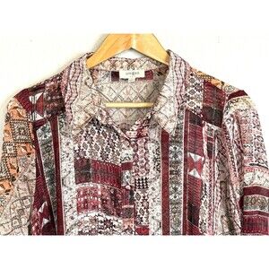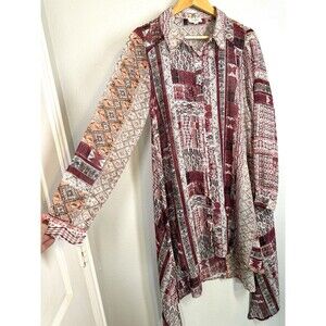 Umgee Sz S Boho Patchwork Sheer Button Up Tunic Blouse Hippie Dress Oversized