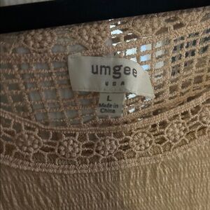 Umgee Tan Blouse with Lace Accents