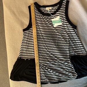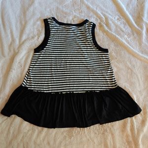 Black and off-white striped tank with ruffle detail