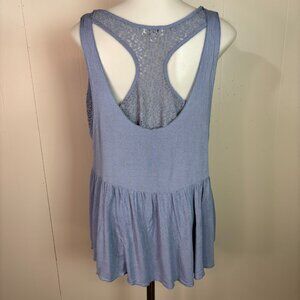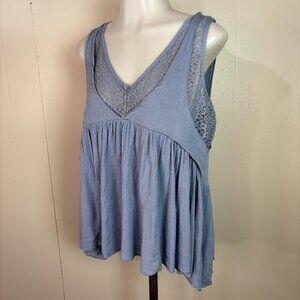 Umgee Tank Top Small Blue Lace Flowy Boho V-Neck Sleeveless Women's