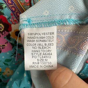 Umgee Teal Floral Wrap Style Blouse Short Sleeve, Loose Fit I34