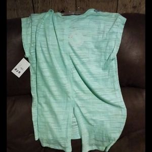 Umgee tee. Has a split back, short sleeves that are right off the shoulder. Cow skull design on the front
