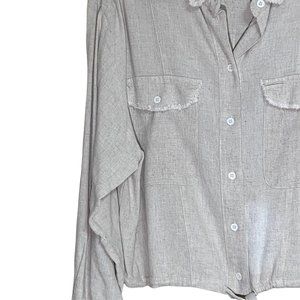 Umgee Textured Linen/Cotton Oversized Frayed Collar Draw String Waist Oatmeal Size S