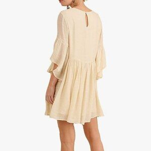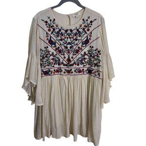 Umgee The Lily Dress Boho Embroidered Gauze Flowy 3/4 Sleeve Mini Dress Size L