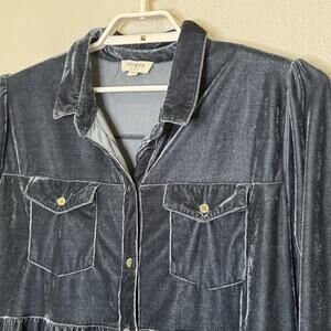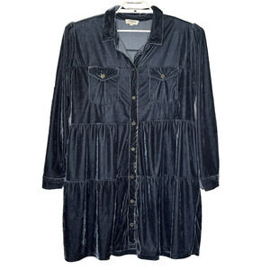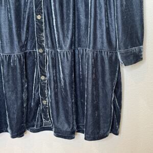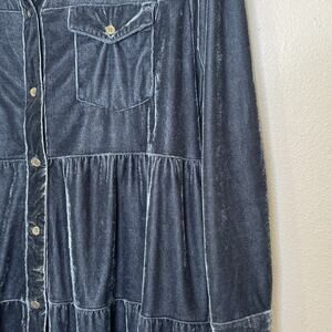 Umgee Tiered Ruffle Dress Sz Large Blue Velvet Long Sleeve Button Front Pockets