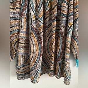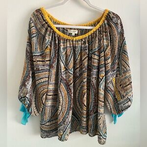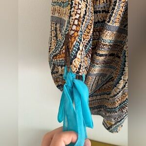 Umgee Top Large Boho Tie Puff Sleeve Abstract Artsy