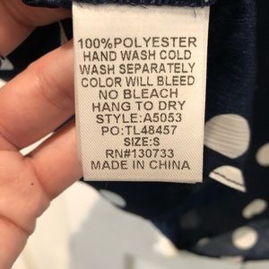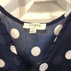 Semi-sheer polka dot navy blue and white Umgee top. Size Small.