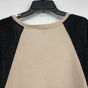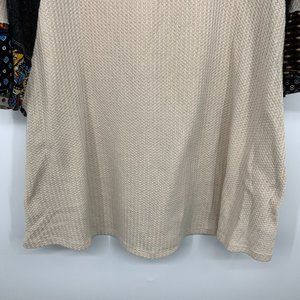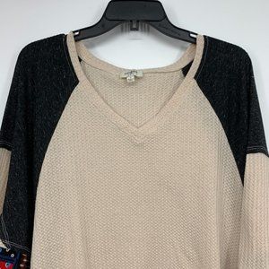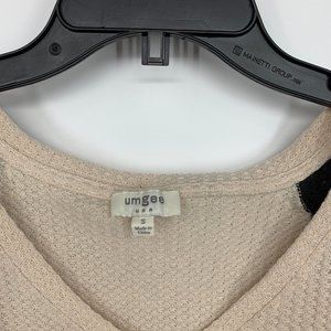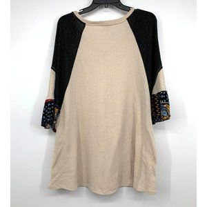 Umgee Top Womens Size Small Beige Waffle Knit Patchwork Flare Sleeve V Neck Tunic Pockets. Great pre-owned condition. Chest: 24"