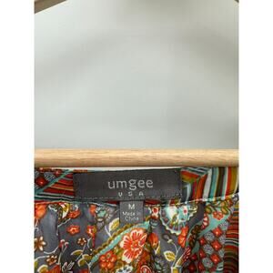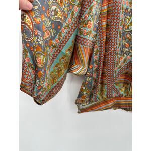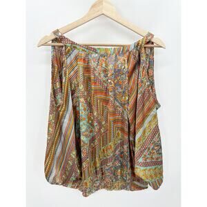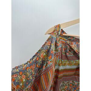 Umgee Top Women MEDIUM Multi-Color Grey Paisley Print Tie Neck Cold Shoulder