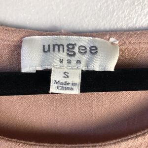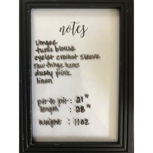 Umgee Top Womens S Eyelet Crochet Sleeve Tunic Blouse Raw Hem Linen Blend Boho