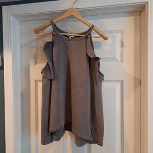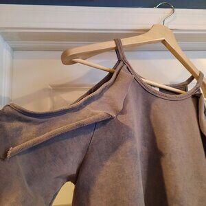 Umgee Top Womens Small Cold Shoulder Sweatshirt Tunic Sweater Acid Wash Grunge
