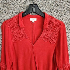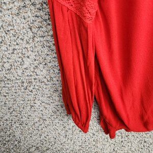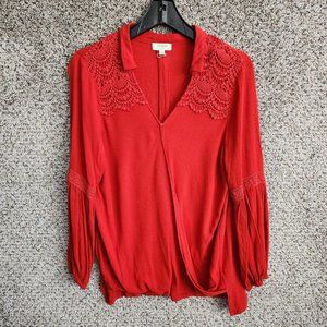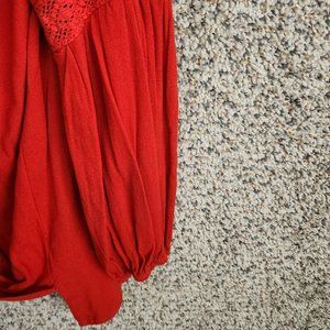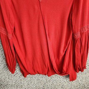 Umgee Top Womens Small Faux Wrap Crochet Detail Orange Hi Low Long Sleeve Boho