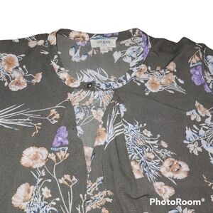 Umgee Tunic Dress Gray Floral Bell Sleeves Keyhole Neckline Small Oversized Boho. Lightweight, dry clean, elastic bell sleeves, Festival, Hippie, business casual, weekend