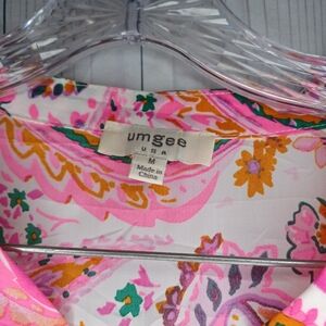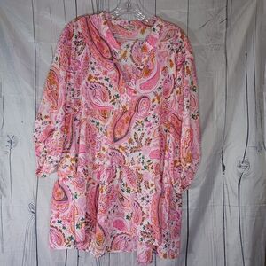 Umgee Tunic Pink Floral Paisley Tunic Cottagecore Blouse Size M pit to pit 20 1/2 length 28 1/2 100%polyester my info 296