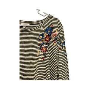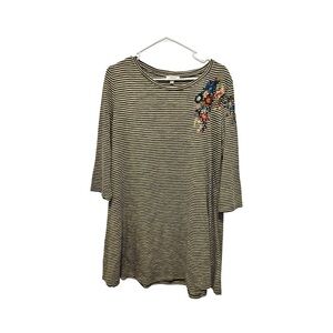 Umgee Tunic Striped Embroidered Floral Size Large Long Sleeve Dress