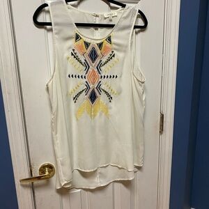 Umgee USA Aztec Southwest Embroidered Chiffon tank top blouse high low size 1XL
