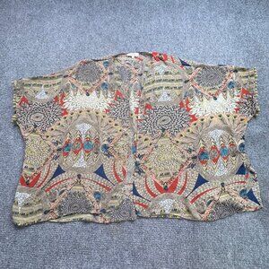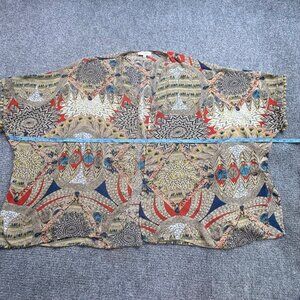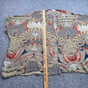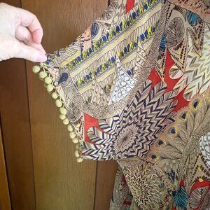 Umgee USA Cardigam Womens S/M Kimono Tribal Pom Pom Trim Sheer Open Boho Artsy