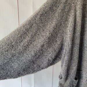 Umgee USA Cardigan Sweater, Women’s L, Gray, Open Front, 2 Front Pockets, Scrunchy Side Detail, Balloon Sleeve, Ribbed Bottom & Cuffs, EUC