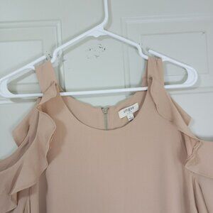 Umgee USA Cold Shoulder Ruffle Sleeve Beige Tunic Dress Size L Womens.