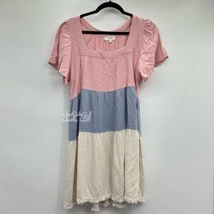 Umgee USA Colorblock Tiered Mini Linen Blend Dress Size Small