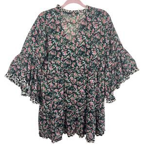 Umgee USA Floral Print Bell Sleeve Lightweight Lined Tasseled Mini Dress Size L