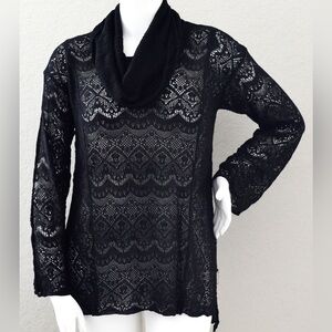 Umgee USA Lace Cowl Neck High-Low Hem Tunic Sweater Black Size Small
