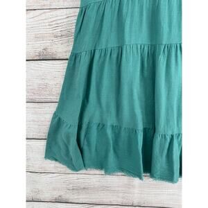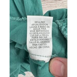 Umgee USA Linen Blend V-Neck Shirt Mini Dress Womens XL Green Rough Hem