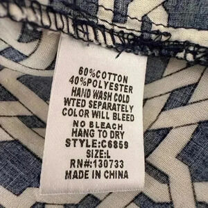 Like new without tags, Beautiful & Lightweight silky material blouse with geometric contemporary pattern. Sleeves have a button to roll them up. Slightly longer in back than front. Pair with slacks, jeans or leggings. Versatile comfortable blouse.