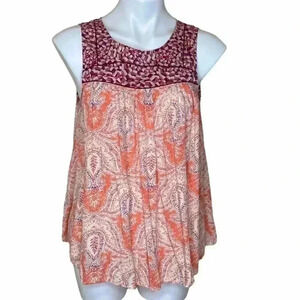 Umgee USA flowing boho bohemian tank top flowey keyhole back size small