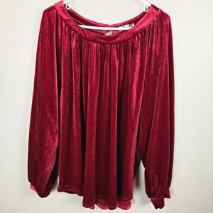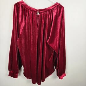 Umgee Velvet Top 1XL Red Crushed Velvet Boho Balloon Sleeve Cottage Peasant PLUS