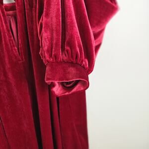 The Umgee Velvet Top in 1XL is a stunning red crushed velvet blouse with balloon sleeves, perfect for a boho, cottage peasant look. Made from polyester and spandex, this plus size top features a round neck, long sleeves, and a pullover closure for easy wear. Ideal for travel or casual occasions, this relaxed fit tunic is adorned with pleated accents and a variety of themes such as bohemian, classic, and princess-inspired styles. The stretchy fabric ensures a comfortable and flattering fit, making it a versatile and stylish addition to your wardrobe for the winter, fall, and spring seasons.