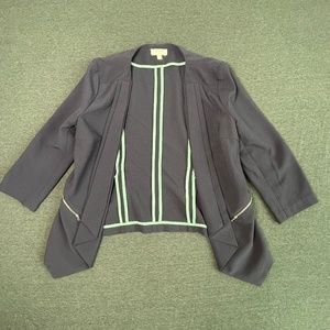 Umgee Waterfall Navy Open Blazer with Zipper and Turquoise Details Size M