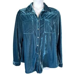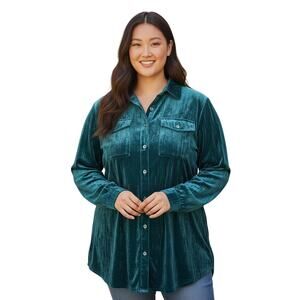 Umgee Whimsigoth Plus Size 1XL Crushed Velvet Button Down Shirt Tunic Jewel Tone